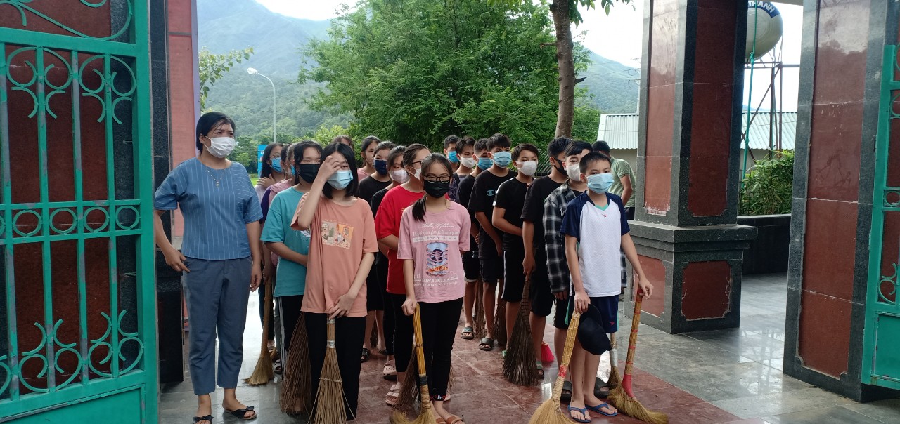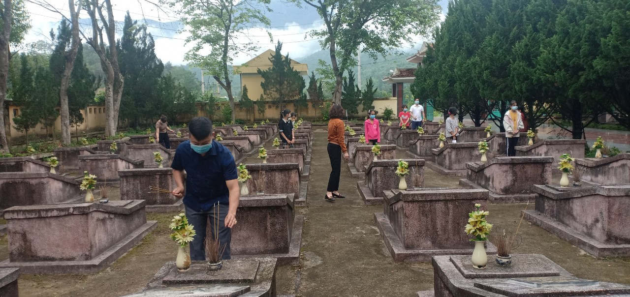Chi đoàn học sinh tham gia quét dọn và viếng nghĩa trang liệt sĩ