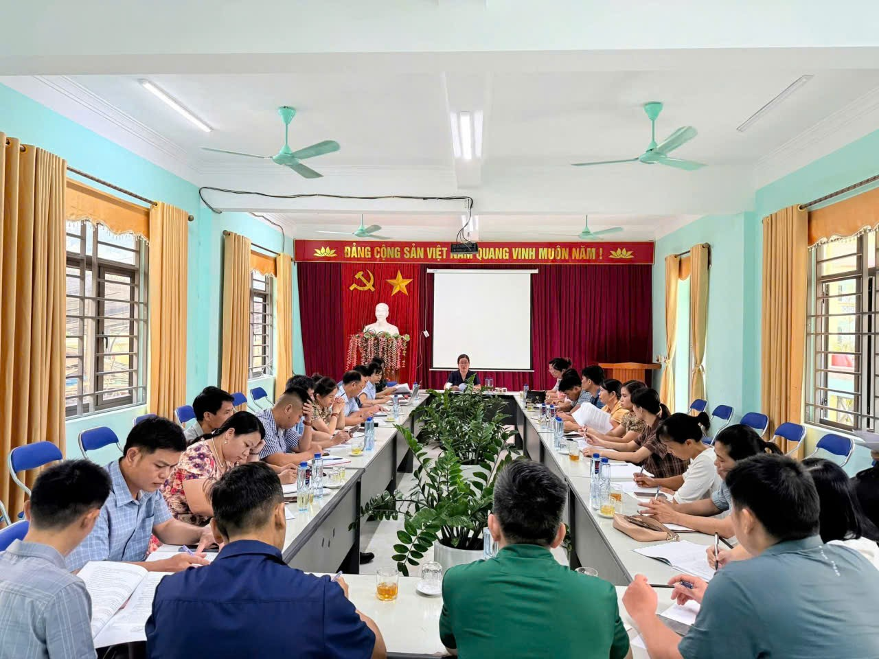 Thực hiện công văn số 2321/SGDĐT-GDTrH, ngày 06/8/2025 của Sở GD&ĐT Điện Biên V/v hướng dẫn tổ chức Sinh hoạt chuyên môn cấp trung học năm học 2025-2026. Cụm sinh hoạt chuyên môn số 7 cấp THCS gồm các trường thuộc các xã Tuần Giáo, Chiềng Sinh, Quài Tở, Pú Nhung, Mường Mùn và trường THCS&THPT Quài Tở trong đó trường THCS Tuần Giáo làm cụm trưởng. Sáng ngày 13 tháng 8 năm 2025, tại văn phòng trường THCS Tuần Giáo đã diễn ra buổi họp quan trọng nhằm thống nhất kế hoạch thực hiện sinh hoạt chuyên môn (SHCM) của Cụm chuyên môn số 7 năm học 2025-2026 với sự tham gia của đại diện BGH, tổ trưởng tổ chuyêm môn các các trường THCS, PTDTBT THCS, TH&THCS trên địa bàn các xã Tuần Giáo, Chiềng Sinh, Quài Tở, Pú Nhung, Mường Mùn và trường THCS&THPT Quài Tở.