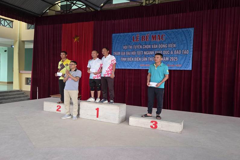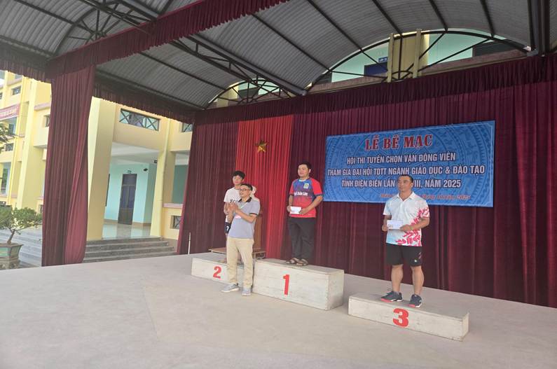 TRƯỜNG THCS TUẦN GIÁO THAM GIA HỘI THI TUYỂN CHỌN VĐV GIA ĐẠI HỘI TDTT NGÀNH GIÁO DỤC VÀ ĐÀO TẠO TỈNH ĐIỆN BIÊN LẦN THỨ VIII, NĂM 2025 Thực hiện Kế hoạch số 540/KH-UBND ngày 16/9/2025 của Ủy ban nhân dân xã Tuần Giáo về việc tổ chức Hội thi tuyển chọn vận động viên tham gia thi đấu tại Đại hội thể dục thể thao ngành giáo dục và Đào tạo lần thứ VIII, năm 2025; Kế hoạch số 28/KH-THCS, ngày 22/9/2025 về tuyển chọn, tập luyện và tham gia Hội thi tuyển chọn VĐV tham gia thi đấu tại Đại hội TDTT ngành Giáo dục và Đào tạo lần thứ VIII, năm 2025, trường THCS Tuần Giáo tham gia hội thi tuyển chọn VĐV gia đại hội TDTT ngành giáo dục và đào tạo tỉnh điện biên lần thứ VIII, năm 2025 đạt kết quả cao. Tổng số giải: 30, trong đó: Giải Nhất: 08 (Cầu lông đôi nam HS); Bóng bàn đơn nam; cờ vua nam; cờ vua nữ; môn Pickleball đôi nam trên 45 tuổi; môn Pickleball đôi nam nữ dưới 45 tuổi; môn Pickleball đôi nam nữ trên 45 tuổi; môn Pickleball đôi nam nữ dưới 45 tuổi).Giải Nhì:10 (Cầu Lông đôi năm nữ HS, chạy 400m nam; chạy 800m nam; 1500m nam; nhảy xa nam; Bóng bàn đơn nam; cờ vua nam; bơi tự do nữ; Bơi ngửa nam, bơi ếch nam). Giải Ba: 12 (Cầu lông đôi nữ; Bóng chuyền nam; bắn nỏ nam - 02 giải; bán nỏ nữ - 02 giải; chạy 100m nam; nhảy cao nữ; môn Pickleball đôi nam dưới 45 tuổi; bơi ếch nam; bơi ngửa nam). Một số hình ảnh của giáo viên, nhân viên và học sinh tham gia Hội thi