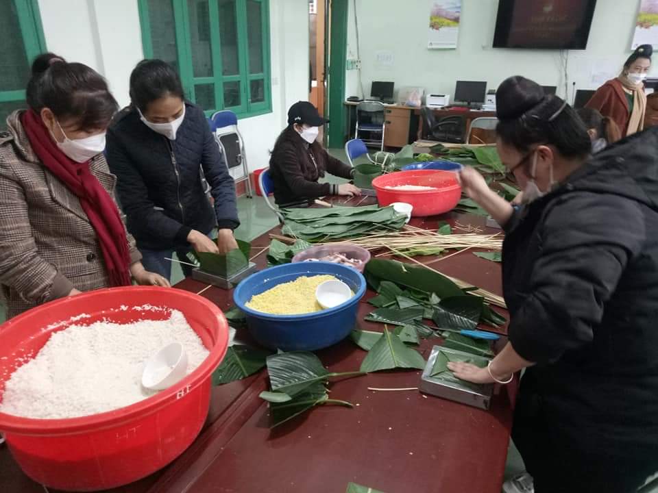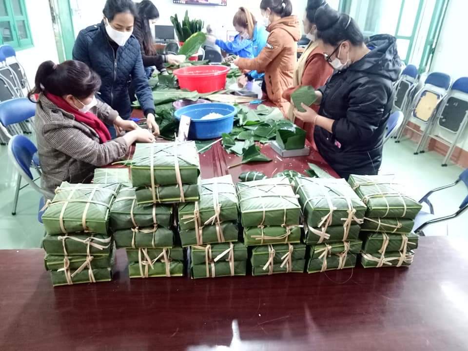 Đoàn thanh niên trường THCS Thị trấn tham gia ngày hội gói bánh chưng “ tết cho người nghèo” do Đoàn Thị trấn tổ chức